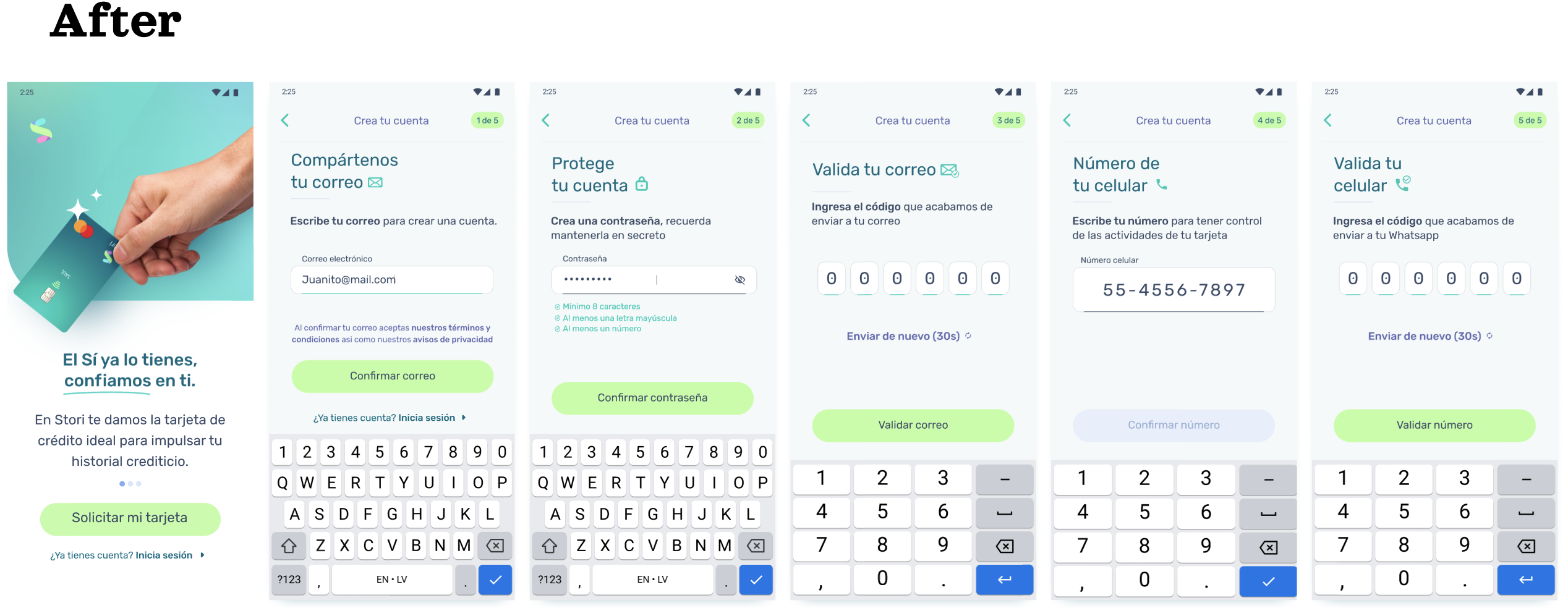 The new composition was launch in all the application process, improving not only the signup but also the following steps such as KYC. after that we were preparing the next iterations focused in user pain points and accesibility